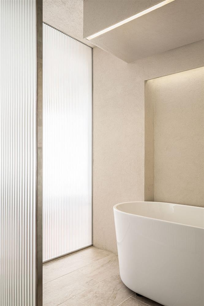 Nhà tắm có vách ngăn có thể giúp ánh sáng xuyên vào bên trong dễ dàng vừa làm sáng phòng lại tăng sự thông thoáng