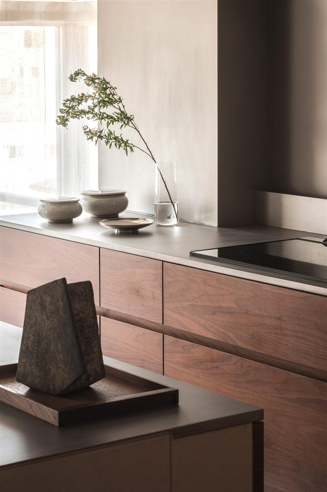 Căn bếp được bố trí các đồ dùng nội thất cần thiết một cách khéo léo, từ bộ bàn ghế ăn cho đến nơi chế biến thức ăn đều rất ngăn nắp, gọn gàng và hòa hợp với không gian chung. Những đồ decor trong phòng không nhiều, chỉ điểm xuyết một vài chi tiết nhưng có sự lựa chọn cẩn thận vì thế không gian vẫn có sự mềm mại cần thiết nhưng vẫn toát lên được vẻ thanh lịch