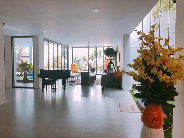 Căn biệt thự của bố mẹ Hồ Ngọc Hà rất thoáng đãng, rộng rãi. Không gian phòng khách có nhiều mặt sử dụng kính, mang đến cảm giác gần gũi với thiên nhiên và đón ánh sáng tự nhiên.