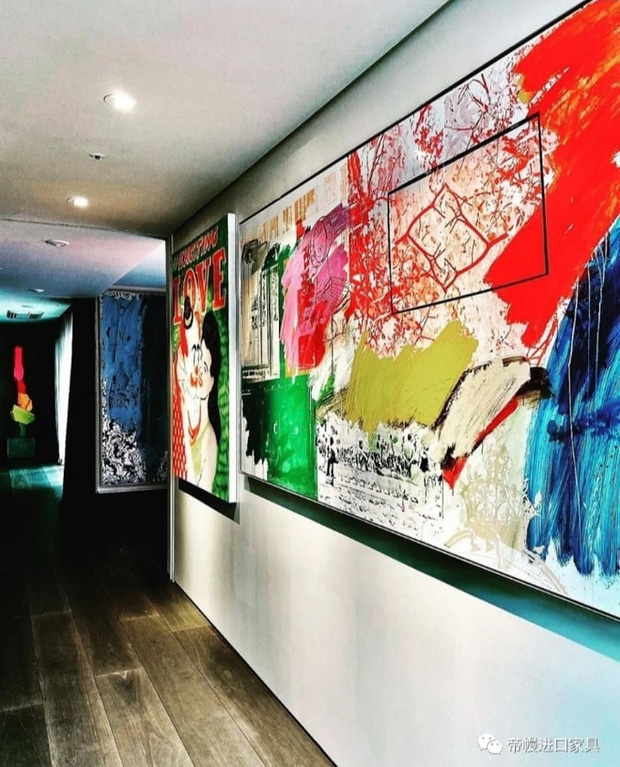Quan sát kĩ hơn, bạn sẽ nhận ra góc trái căn phòng chính là bức họa nổi tiếng của danh họa trường phái Chủ nghĩa siêu hiện thực George Condo với giá trên trời - 1,4 tỷ VND.