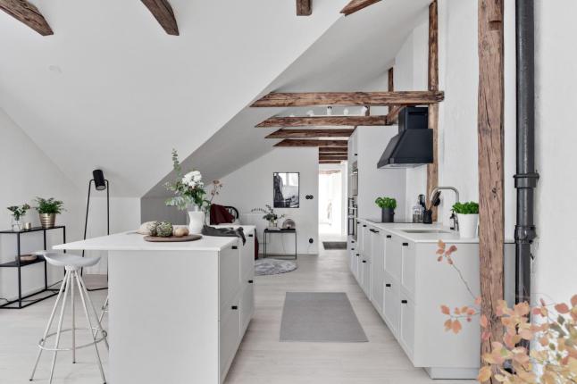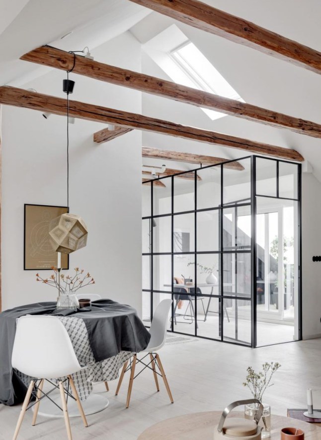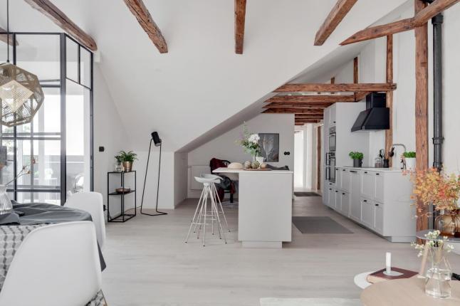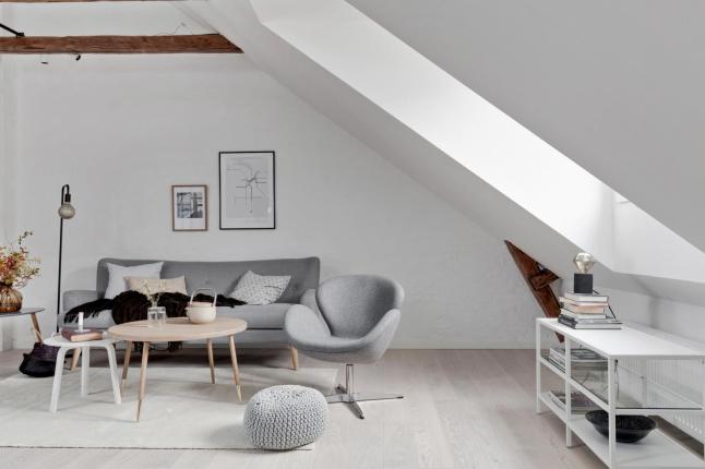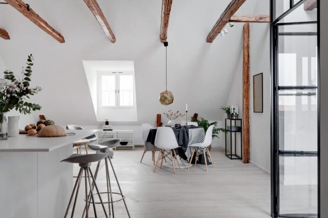 Đầu tiên, tầng gác mái được tận dụng để làm các phòng chức năng như phòng khách, phòng ăn, phòng ngủ... Bất cứ góc nhỏ nào cũng đều được tận dụng tối đa. Gia chủ sử dụng các món đồ nội thất đơn giản, và trang trí nhà theo phong cách Bắc Âu, mang đến một không gian sống nhẹ nhàng, ấm cúng nhưng vẫn toát lên vẻ hiện đại, tinh tế.