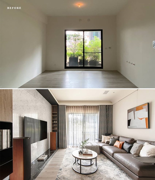 Xuất phát từ sở thích của gia chủ, tông màu xám, màu đen và màu trắng cá tính được sử dụng là gam màu chủ đạo. Đường vân gỗ, hoạ tiết đá hoa cương, đá tự nhiên hay việc chọn sofa màu nấu cà phê, bàn tròn tạo nên nét đặc sắc và hiện đại của không gian nhà đẹp. Ngoài ra, chủ nhân đặc biệt chú trọng đến thiết bị nghe nhìn, hệ thống âm thanh.