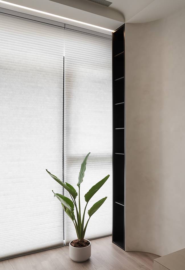 Đèn âm tường và đèn chiếu được sử dụng làm bộ phận chính trong phương án chiếu sáng. Bên cạnh đó, thanh đèn LED nhôm được bố trí gần cửa sổ để định hình tư thế có thể thay đổi của ánh sáng, và nó được xếp chồng lên nhau với ánh sáng vàng 3000k, tạo nên một tầm nhìn mềm mại vô tận.