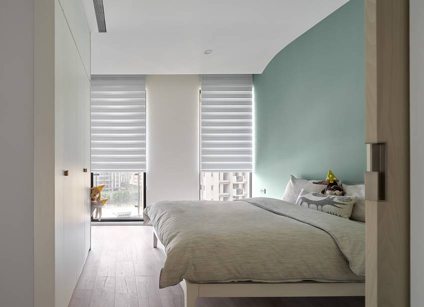 Phòng ngủ đối diện được lát bằng bức tường đầu giường màu xanh nước biển, và để duy trì một bức tranh hoàn chỉnh về ánh sáng ban ngày. Thông qua việc chuyển và lược bỏ bức tường ngăn, một cơ sở vui chơi bí mật cho trẻ nhỏ được mở ra. Chiều sâu là ô cửa đóng mở tự do, cho phép trẻ em phiêu lưu tìm kiếm và ẩn nấp.