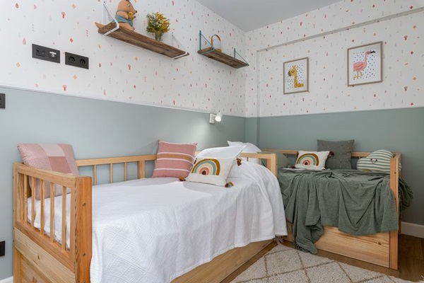 Phòng ngủ trẻ em mang nét đẹp tươi vui, sống động và gọn gàng. Không cần quá nhiều đồ đạc mà vẫn tạo được sự ấn tượng đặc biệt.