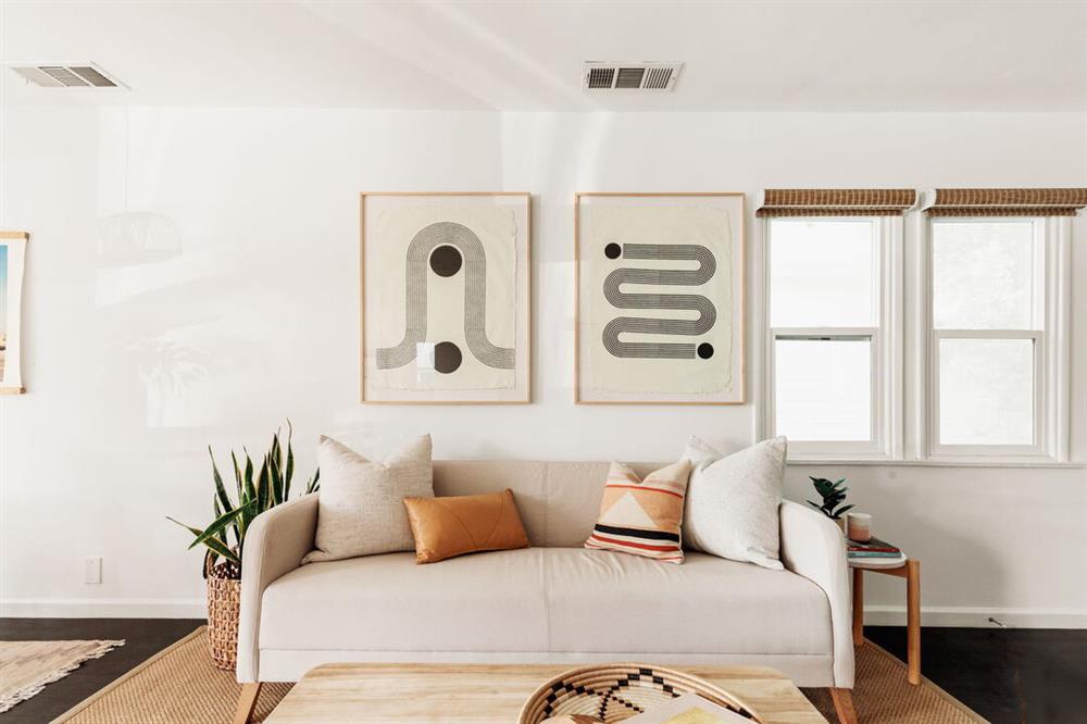 Bên cạnh đó, gia chủ không quên trang trí các mảng tường trong phòng bằng tranh treo tường, gương và cây cảnh. Những giỏ cây xanh giúp mang đến cảm giác tươi mát, bầu không khí trong lành cho căn phòng.