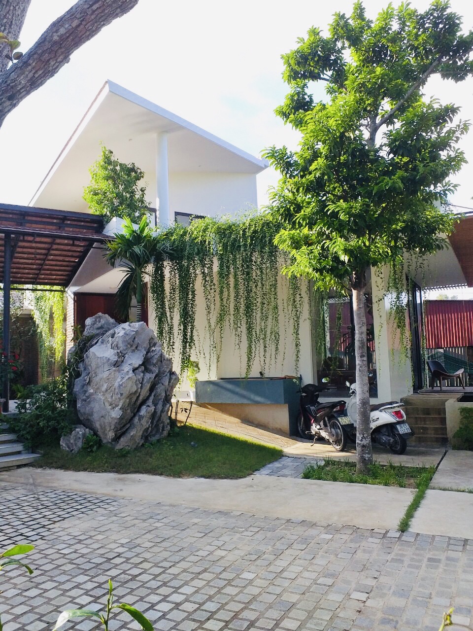 - Bố mẹ mình là người rất yêu cây cối và rất mát tay gieo trồng, chăm sóc. Từ tâm niệm "mùa nào con cháu về có quả đó", nên đa phần cây cảnh quan trong công trình đều sử dụng cây ăn trái ở quê mình. Đan xen là các mảng xanh hoa, cỏ, tiểu cảnh , cúc tần sử dụng như một rèm chắn nắng tự nhiên . Công trình vẫn giữ lại những khoảng đất trống để bố mẹ có thể gieo trồng rau sạch phục vụ đời sống sinh hoạt hằng ngày.