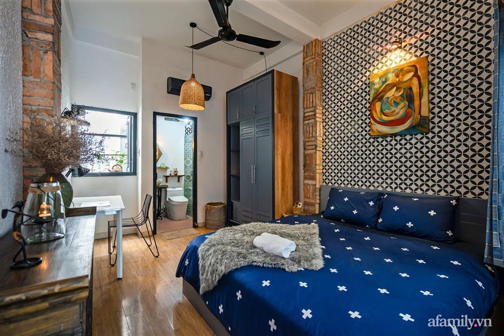 Phòng ngủ với gam màu trầm ấm, thanh lịch.