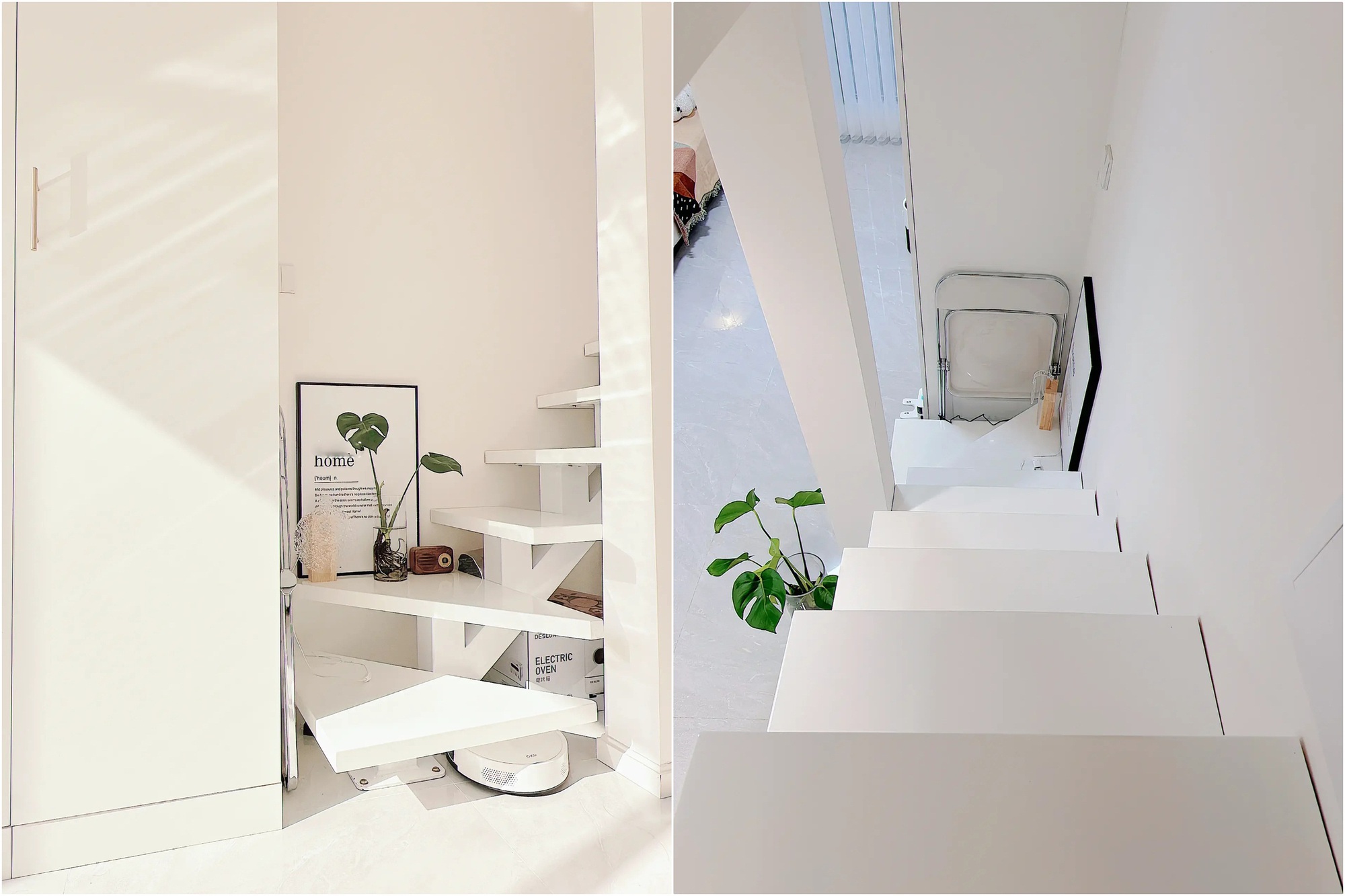 Gác xép nhỏ được sử dụng làm không gian phòng ngủ. Chiều cao của căn hộ chỉ có khoảng 3,5 mét nên chiều cao của gác xép cũng không được tính là lý tưởng. Tuy nhiên, thiết kế phòng ngủ vẫn có thể đảm bảo cho Tiểu Châu sử dụng thoải mái. Vậy nên, thay vì sử dụng giường ngủ thông thường, Tiểu Châu đã lựa chọn kiểu giường bệt để có được một không gian nghỉ ngơi thoải mái nhất.