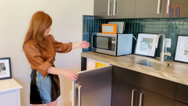 Trong phòng có cả tủ lạnh, lò vi sóng, khu vực pha sữa cho Thiên Từ.