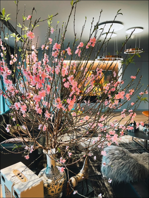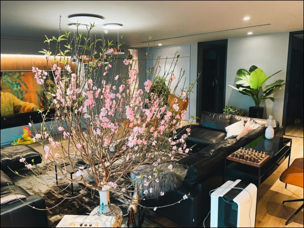 MC Thành Trung tự tay đi mua sắm đồ, hoa tươi trang trí ngày Tết. Cành đào phai được Thành Trung mua sắm chơi từ rất sớm nên đến ngày 28 tháng Chạp đã nở nhiều hoa.