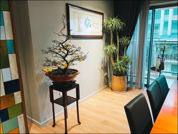 Cây quất to hoàng tráng được trang trí ở góc phòng.