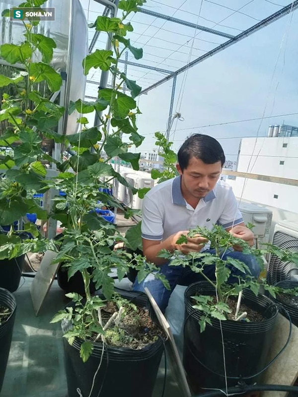 Anh Nguyễn Văn Giàu, ngụ tại quận Tân Bình là một trong những người như thế. "Năm 2016, trong một lần tình cờ đọc được được 1 bài báo viết về đề tài trồng cây trên sân thượng, thấy khá thú vị với việc người ta trồng được các loại cây trong thùng, vừa đẹp mà vừa cung cấp thực phẩm sạch cho gia đình nên mình cũng mày mò tìm hiểu. Lúc đó, do mới vào nghề nên tôi chỉ trồng được cà chua, dưa leo và các loại rau", anh chia sẻ.