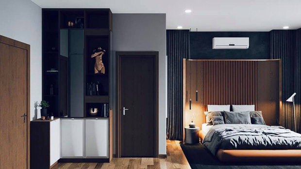 Phòng ngủ có gam màu tối theo hướng cổ điển nhưng đầy tinh tế