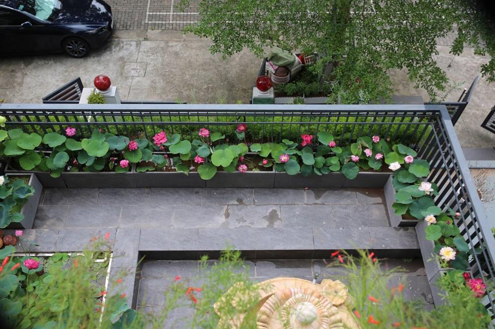 Góc ban công nhờ có thêm đầm sen mà giàu sức sống hơn hẳn.