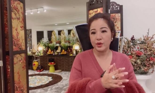 Thúy Nga cho biết những người làm ăn trong nhà nên bài trí một bình hoa như thế này, có ngọc, cẩm thạch, đá ngũ sắc đủ loại. Cô tiết lộ nhà mình cũng có nhưng bé hơn nhiều.
