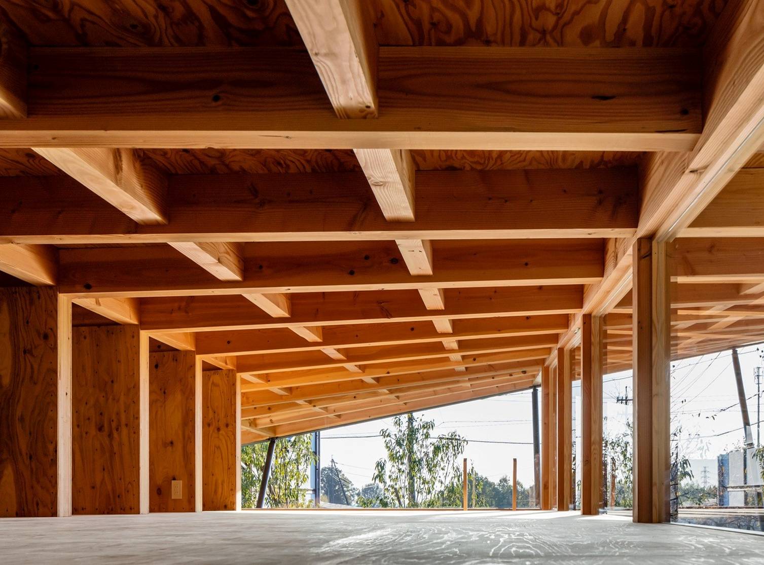Các kiến trúc sư đã thiết kế mái nhà cao về phía Đông gần phía các ngọn núi, hạ thấp về phía Nam và sử dụng thanh gỗ thẳng để tạo thành một đường xéo, nhằm giảm bớt độ dày của mái nhà.