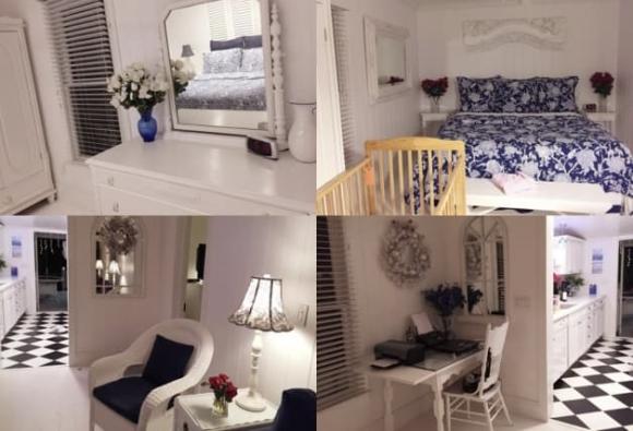 Nữ diễn viên thường xuyên khoe ảnh tổ ấm nhỏ của mình. Không gian căn hộ được trang trí theo tông màu chủ đạo trắng vàng với thiết kế khá tinh tế. Đặc biệt phòng tắm với thiết kế sang trọng, thường được cô chụp ảnh check in với đủ kiểu tạo dáng sexy. Ngoài ra, khu vực nhà bếp cũng được Elly Trần yêu thích. Cô sắm đủ vật dụng nấu ăn xinh xắn lẫn tiện nghi và thường xuyên đích thân trổ tài bếp núc bồi dưỡng cho hai con.