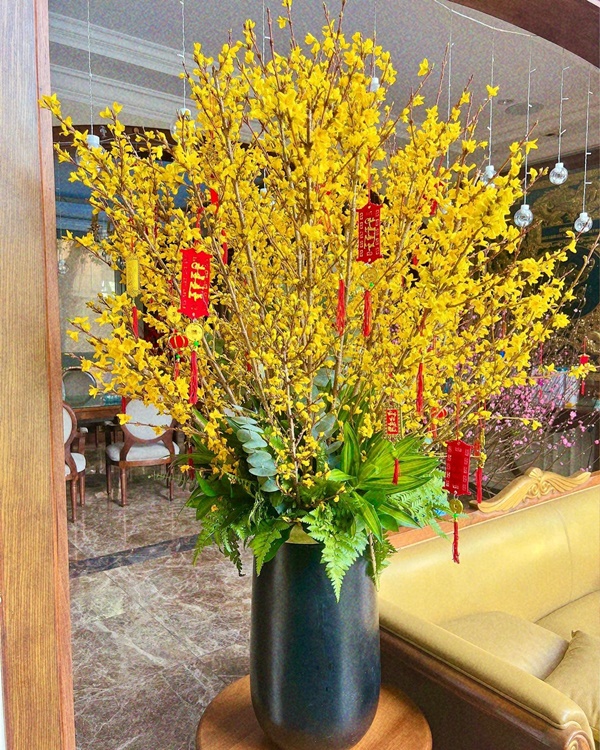 Mỗi dip lễ Tết, sao Việt lại đầu tư thời gian, chi phí khủng để trang hoàng nhà cửa. Không gian sống rộng rãi, sang trọng càng thêm hoành tráng, lộng lẫy nhờ trang trí đèn, hoa tươi đủ màu sắc rực rỡ. Không chỉ trang trí các loại hoa ngày Tết như hoa mai, hoa đào, quất mà nhiều loại hoa tươi đắt tiền khác cũng được sao Việt mạnh tay mua sắm.