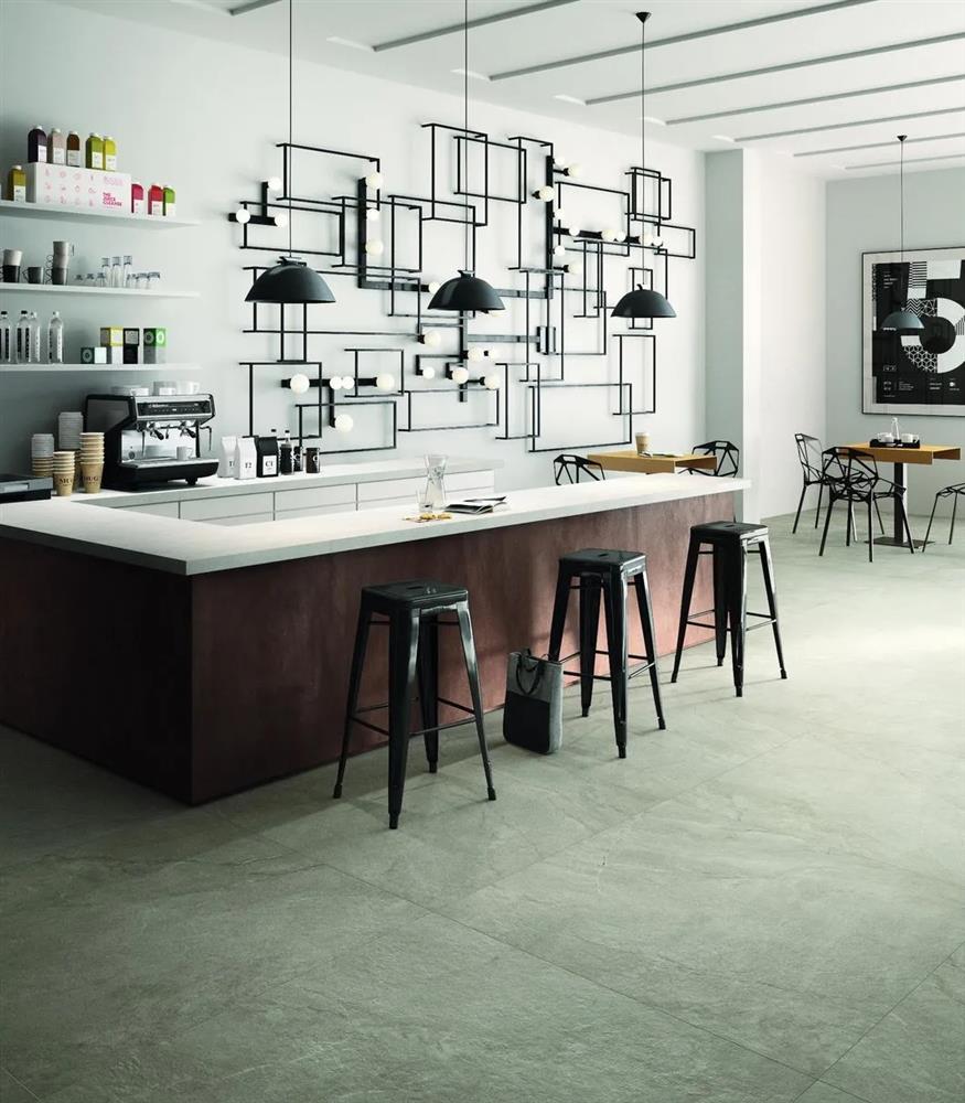 - Gạch vân đá: Loại gạch này kích thước lớn có ít mối nối và dễ quản lý, họa tiết lại không cầu kỳ nên rất phù hợp với những bạn trẻ theo đuổi cá tính, màu sáng hoặc gam màu lạnh giúp cho môi trường nhiệt độ cao mát mẻ hơn.