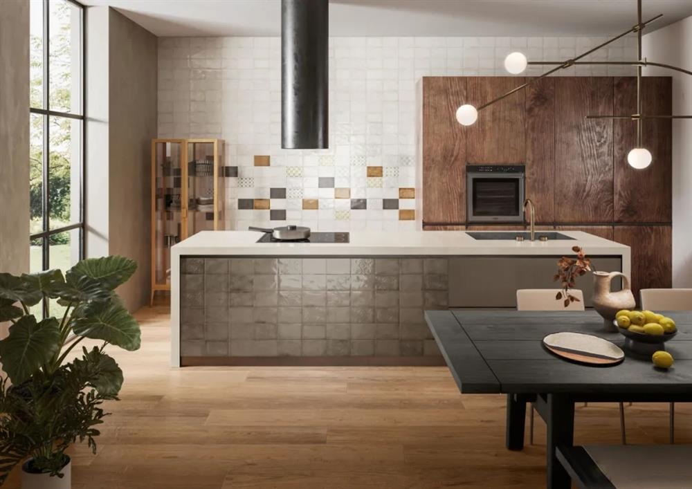 Bên cạnh đó, màu sắc phong phú và hình dáng tinh tế của gạch ốp cũng sẽ làm cho tường bếp trở nên sinh động hơn, tôn lên phong cách và cá tính của căn bếp, đồng thời quét sạch khói dầu, sự nhàm chán do nấu nướng mang lại.