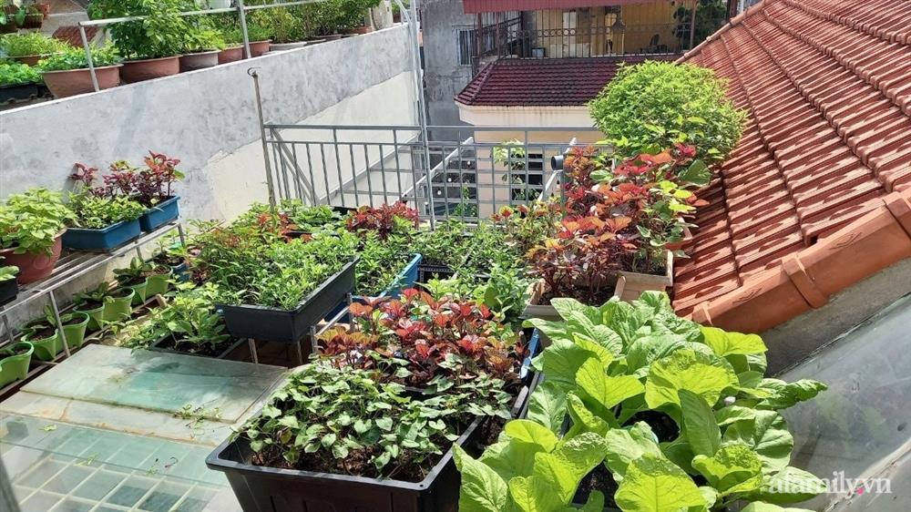 Góc sân thượng nhỏ được chị Thu Quỳnh sắp xếp gọn gàng để trồng được nhiều các loại rau ăn hàng ngày.