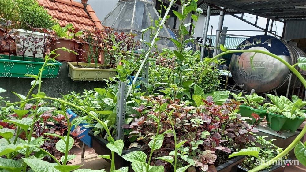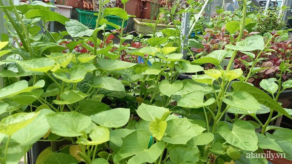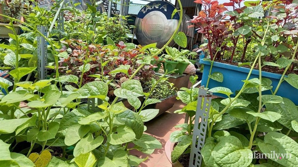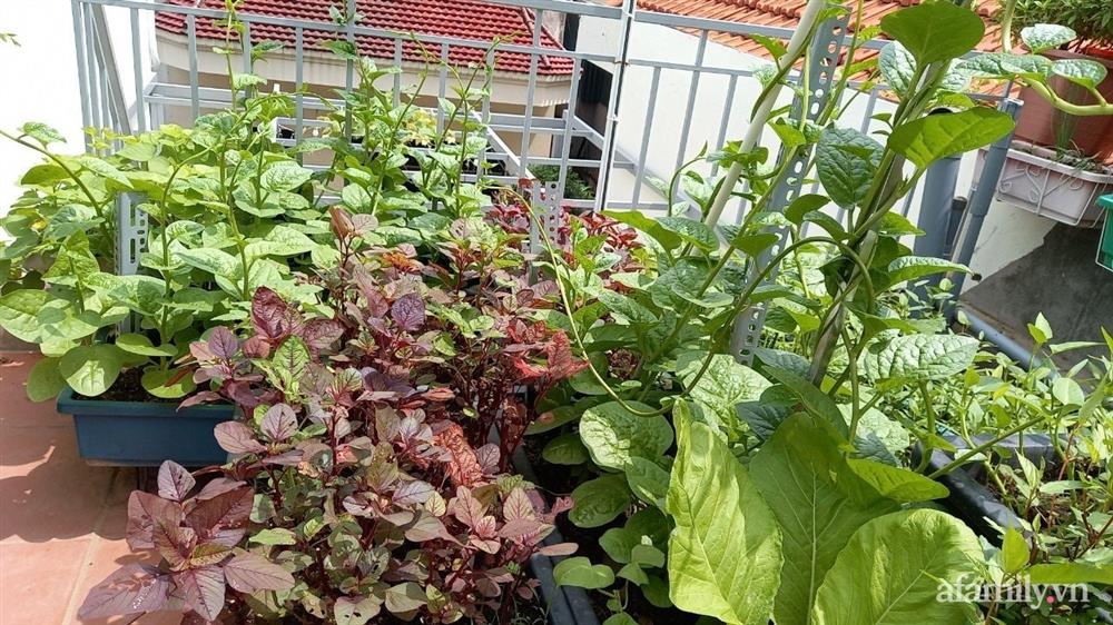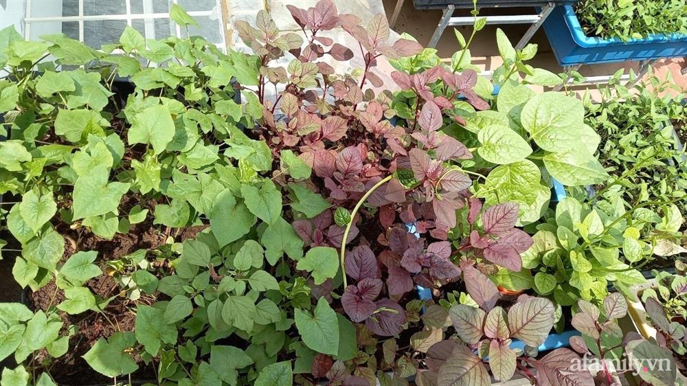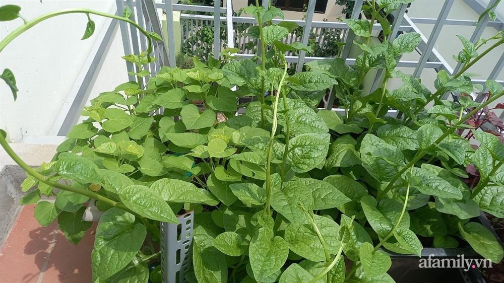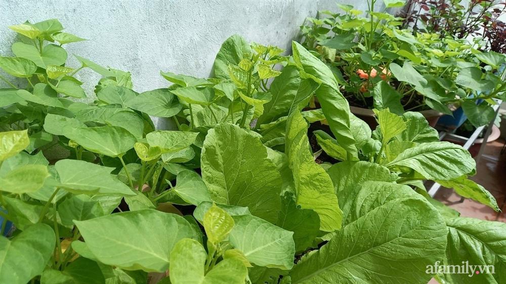 Các loại rau tốt tươi nhờ bàn tay khéo léo, đảm đang cùng kinh nghiệm của chị Quỳnh. Không gian sân thượng luôn xanh tươi nhờ đam mê và sự chăm chỉ. Các loại rau như rau muống, mùng tơi, rau dền luôn tốt tươi giúp khoảng thời gian giãn cách xã hội, gia đình chị không lo mua thực phẩm sạch hàng ngày.
