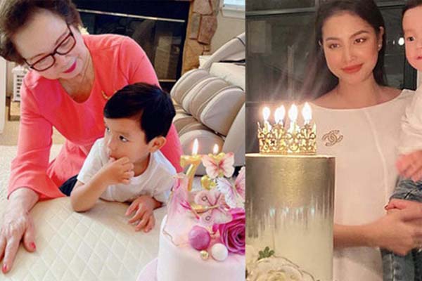 Quý tử thứ hai của nàng Hậu sở hữu khuôn mặt dễ thương, bụ bẫm. Mẹ bỉm còn tranh thủ khoe khéo 1 góc giày, túi hoành tráng ở phía sau