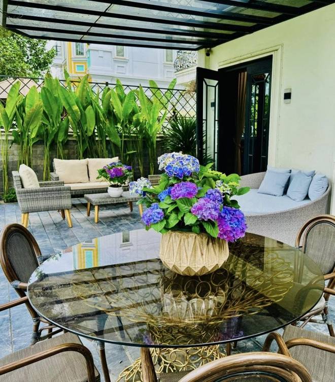 Là người yêu hoa nên từ ngoài vườn đến trong nhà nữ diễn viên có rất nhiều loại hoa khác nhau, khiến căn biệt thự dù rộng lớn nhưng vẫn rất ấm cúng và đầy sức sống.