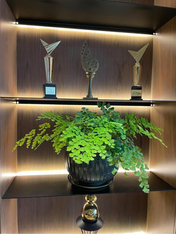 Căn hộ còn có một góc riêng trang trọng để trưng bày những giải thưởng trong quá trình làm nghề của MC Thành Trung, cũng như những hình ảnh ghi lại các khoảnh khắc đặc biệt của gia đình.