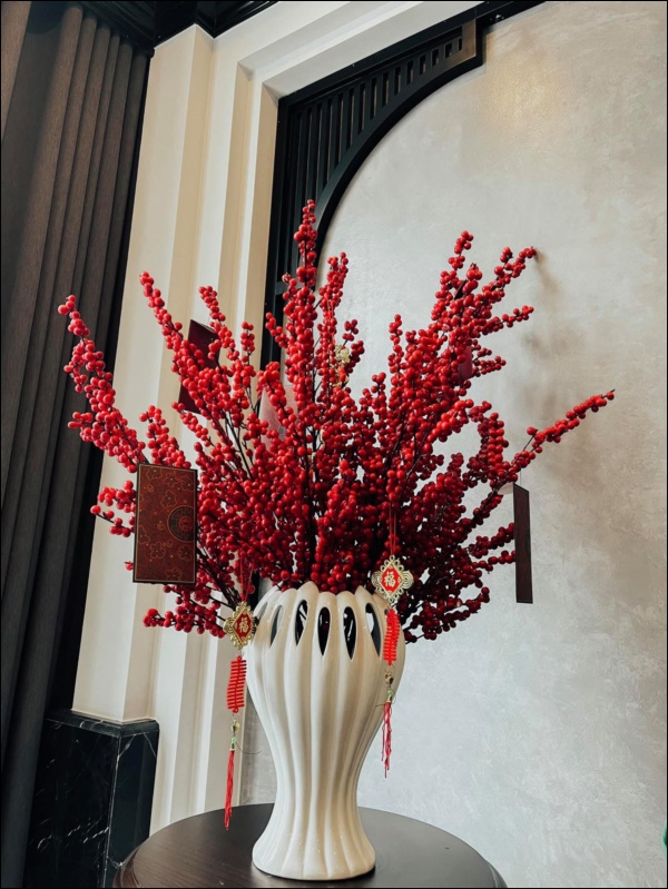 Dàn trạng nguyên đỏ thắm được Phương Oanh bày trí khắp cả ban công.