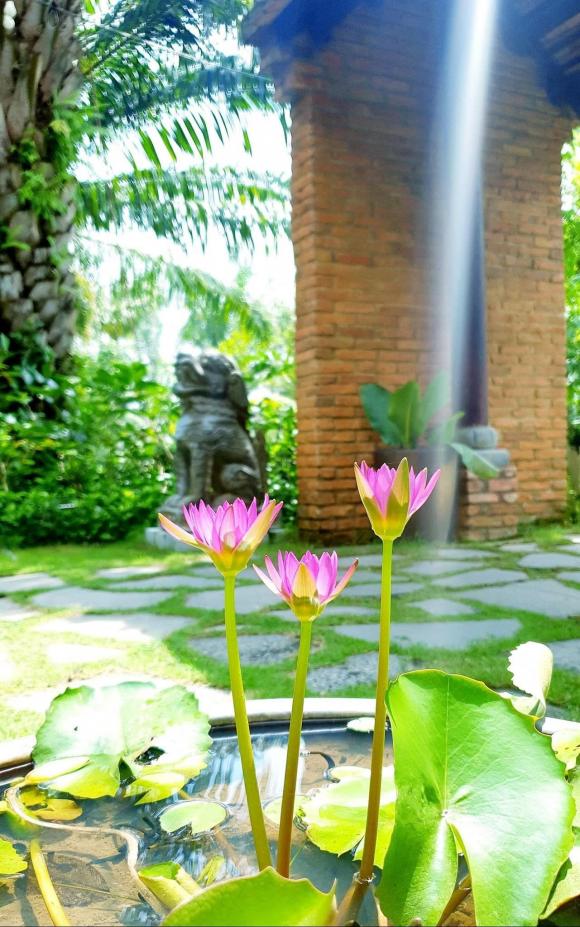 Kiwi Ngô Mai Trang hé lộ không gian yên bình, nhiều cây xanh ở nhà vườn.