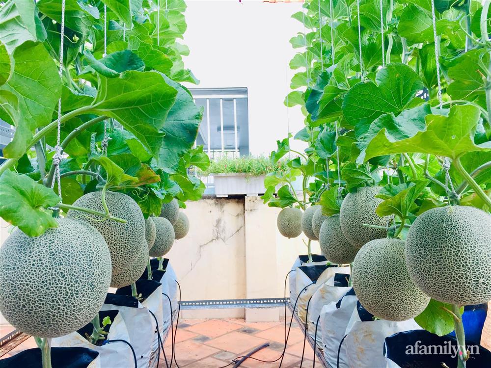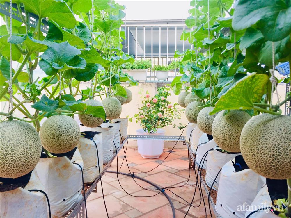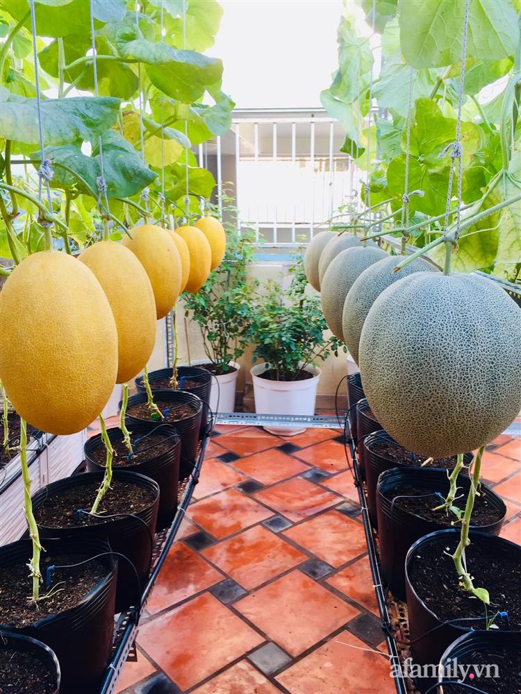 Chị Ngọc Ánh chia sẻ: "Thời tiết Sài Gòn khá phù hợp cho việc trồng dưa. Đây cũng là loại quả mà mọi người trong gia đình mình yêu thích thưởng thức nên mình trồng khá nhiều loại.