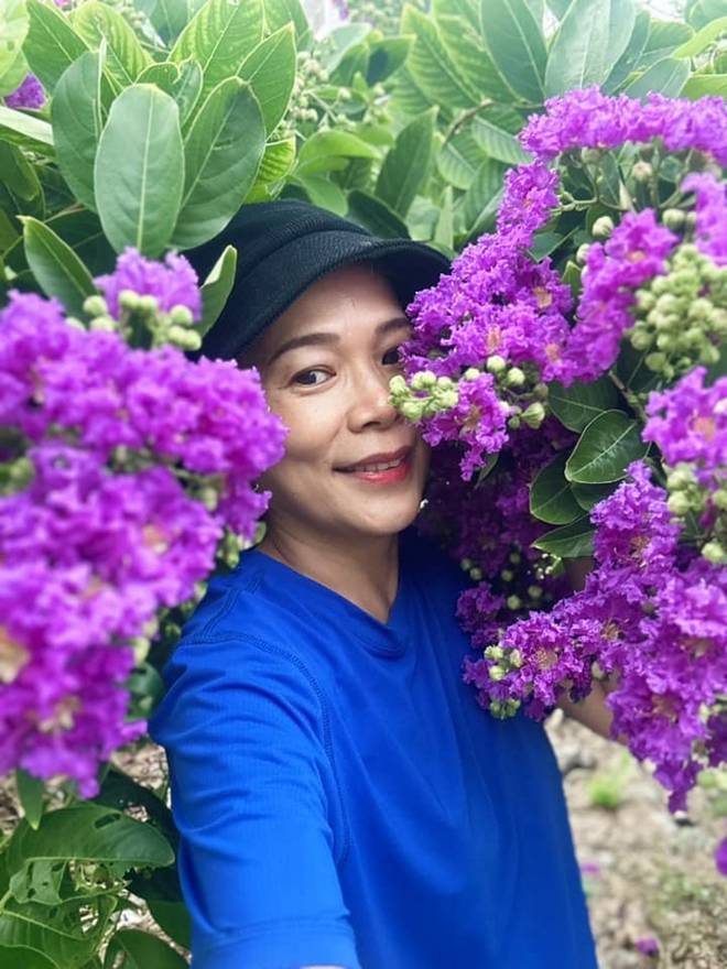 Hoa tím rực rỡ trong khu vườn của Mỹ Lệ. Cô tiết lộ: "Bằng lăng Thái hoa chùm to đùng mà nở hoài không thấy tàn".