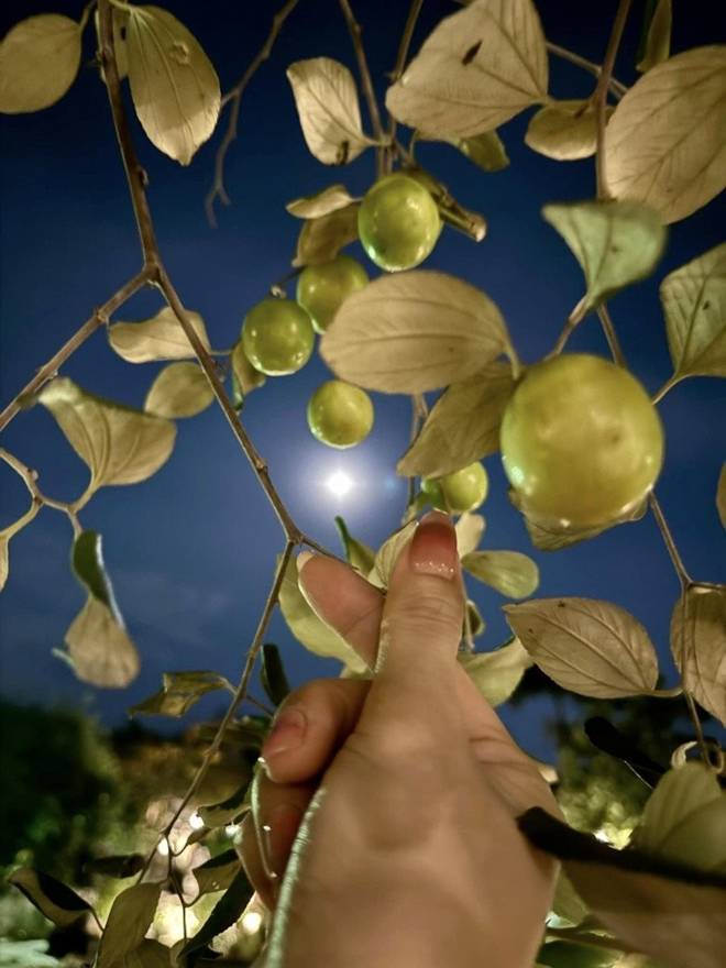 Ngôi sao hạng A của showbiz Việt khoái chí tận hưởng sự bình yên, uống rượu thưởng trăng trong không gian nhà vườn của mình: "Nay được ngắm trăng, uống rượu dâu, hái táo, ăn xoài…"