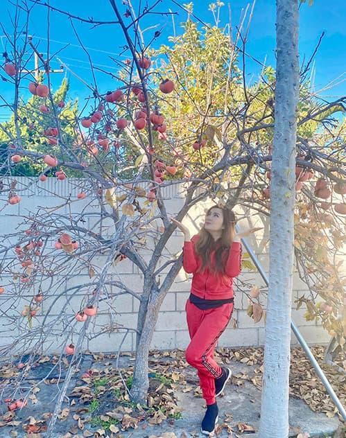 Trong vườn nhà ca sĩ Hạ Vy trồng nhiều cây quen thuộc với người Việt như: Đu đủ, hoa giấy, quất, hồng... Đặc biệt là cây quất cao quá đầu, sai trĩu trái. Cây hồng cũng có quả sum suê, gia đình nữ ca sĩ ăn không kịp. Nữ ca sĩ cho biết, vì bận rộn đi diễn nên có không có thời gian chăm sóc nhiều, nhưng cây cối trong nhà vẫn phát triển xanh tốt.