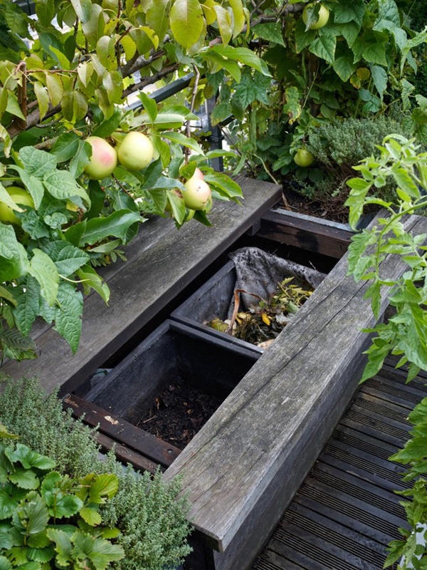 Thậm chí ở khu vườn độc đáo này, Camile còn thiết kế góc ủ phân với nắp gỗ và được bọc lót cẩn thận để tiện chăm sóc cây cối trong khu vườn.