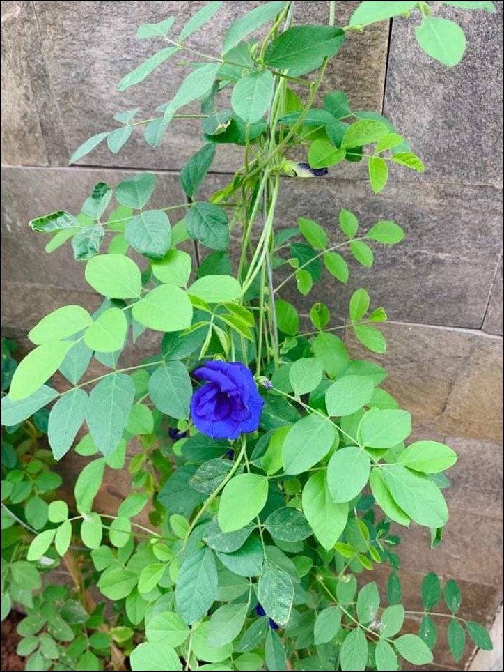 Lối ra vườn hai bên Lã Thanh Huyền trồng hoa đậu biếc. Đây là loại cây leo giàn không khó để chăm sóc. Hoa đậu biếc chị em có thể làm chè, làm bánh hoặc sấy khô ướp trà.
