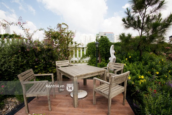 Có hẳn một bộ bàn ghế giữa khu vườn dành cho khách hàn huyên.