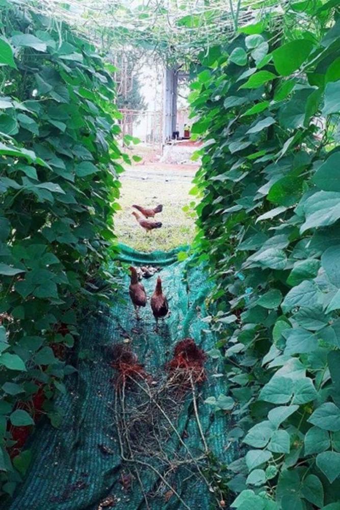 Bên trong vườn còn kết hợp nuôi thêm gà.