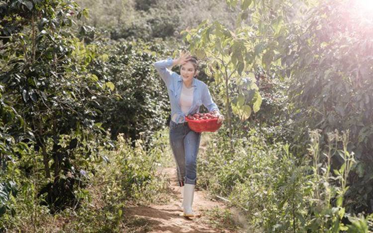 Khác hoàn toàn sự lộng lẫy trên thảm đỏ, mỹ nhân họ Lý thường ăn bận giản dị đến mức khó tin khi đi làm vườn. Hết mang dép tổ ong, cô lại làm dân tình một phen thích thú trước khoảnh khắc đội nón lá, diện đồ ở nhà đi làm nông. Bên cạnh vườn rau cải thảo rộng 1ha mà cô từng giới thiệu còn có rất nhiều loại nông sản khác như atiso, cải thảo, rau xà lách, bí ngòi, bơ, dâu tây, súp lơ. Đặc biệt, cô nàng còn nuôi thêm gà tại khu nông trại.