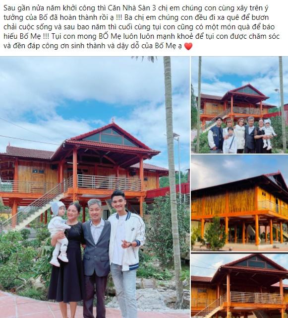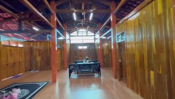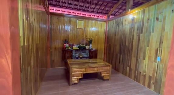 Ngôi sao gốc Hải Dương chia sẻ thêm, căn nhà sử dụng hết 70 khối gỗ và 8.000 nghìn thanh gỗ ghép tường. Trong clip trước đó, Mạc Văn Khoa khoe khuôn viên vườn nhà rộng rãi với hòn non bộ "tỏa mùi tiền" ngay trong sân.