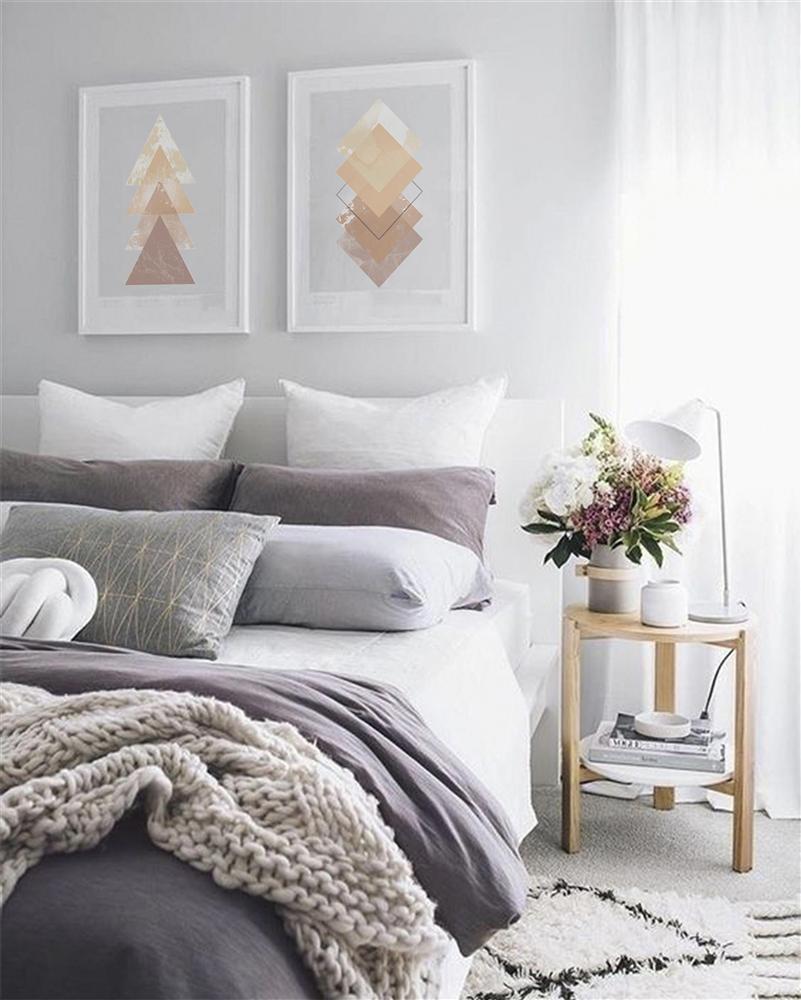 Hãy để bức tường của bạn trở nên đẹp và cuốn hút hơn với những bức tranh nghệ thuật đẹp mắt. Nếu bạn thêm tác phẩm nghệ thuật vào tường, hãy chọn các tác phẩm nhỏ hơn tường để kích thước tường của bạn được phóng đại. Nếu bạn treo tranh tường một cách chiến lược, chúng có thể biến đổi không gian của bạn một cách đáng kể - ví dụ như xếp tranh theo chiều dọc sẽ khiến phòng ngủ như cao hơn, hay xếp tranh theo chiều ngang sẽ giúp tạo cảm giác phòng ngủ rộng hơn.