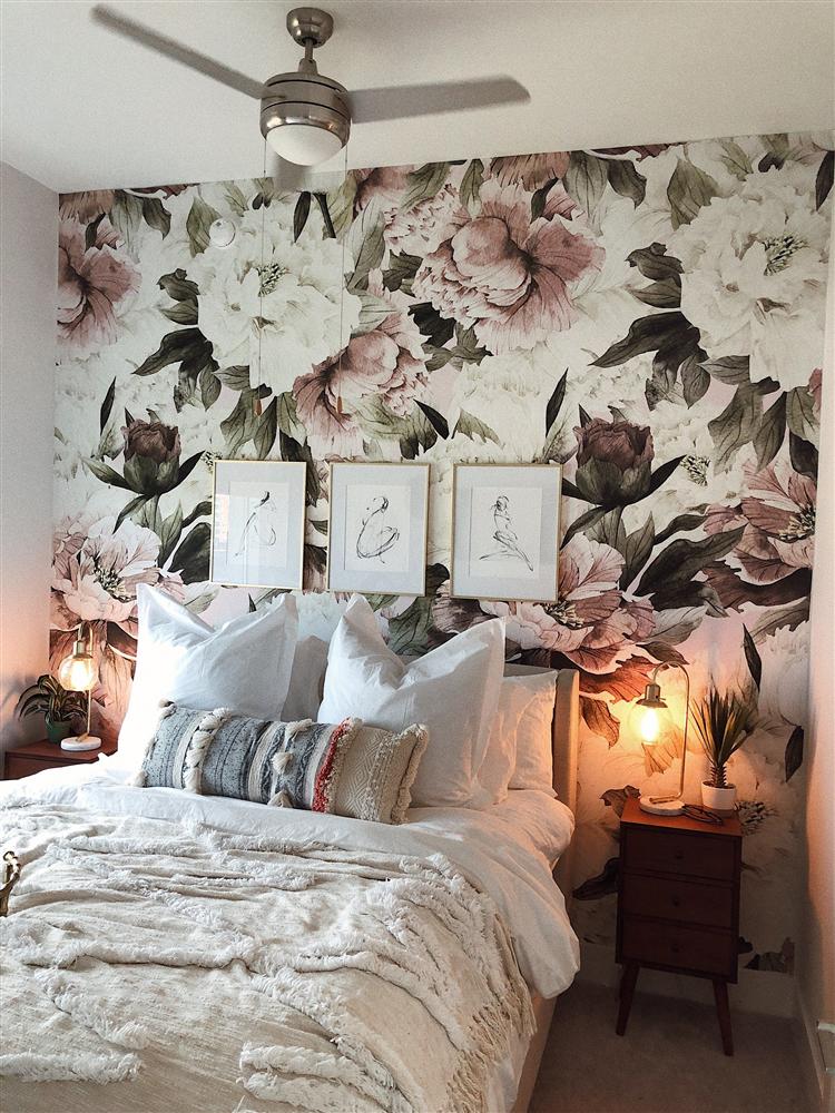Giấy dán tường là những bông hoa cỡ lớn ngay lập tức cuốn hút người xem.