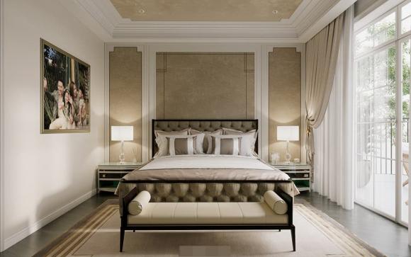 Phòng ngủ có gam màu trầm ấm, nhẹ nhàng