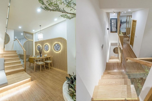 Chia sẻ về ý tưởng xây dựng vườn giữa nhà, người vợ trẻ này tâm sự: "Về khoảng sân vườn giữa nhà chính là ý tưởng từ anh thiết kế Võ Thành Công. Vợ chồng mình may mắn vì gặp được anh là người thiết kế rất có tâm. Khi mình đưa ý tưởng là người rất yêu thích nhà bếp và những mảng xanh trong cuộc sống, mong muốn vừa nấu ăn vừa được ngắm sân vườn, nhưng vẫn muốn nhà có đủ không gian sinh hoạt thì anh đã cho mình ý tưởng xây dựng vườn giữa nhà".