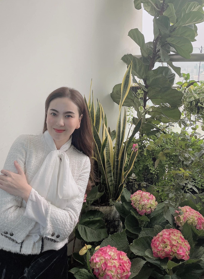 Hiện vợ chồng cô đang sống trong một căn hộ cao cấp ở Hà Nội. Qua những hình ảnh được chia sẻ trên trang cá nhân, có thể thấy tổ ấm của hai vợ chồng cô có một không gian xanh mát, thoáng đãng.