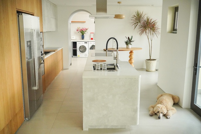 Là một food vlogger và cũng cực kì thích nấu ăn nên phòng bếp của Vũ Dino được trang bị các đồ điện tử, hệ thống lọc nước, tủ bếp… đến từ các thương hiệu xịn xò, đắt đỏ. Ngoài ra, phòng ngủ master, phòng làm việc của anh chàng cũng đc chăm chút với không gian thoáng đãng, nhiều ánh sáng.