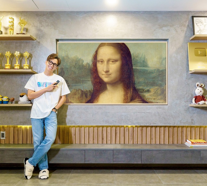 Hơn nữa, đây là căn hộ đập thông 3 tầng nên rất thoáng, được Ngô Kiến Huy phân chia thành nhiều không gian sống khác nhau, trong đó có cả hồ cá ở ban công trên tầng cao và phòng tập gym.