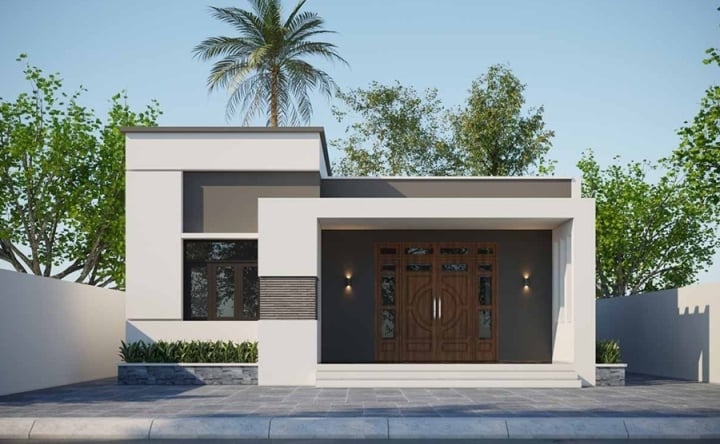 Mẫu nhà cấp 4 mái bằng được xây trên diện tích 10x16m, có mặt tiền ấn tượng với những khối vuông, gờ tường đơn giản, không nhiều chi tiết phụ rườm rà. (Ảnh: Thietkethicongnhadep)